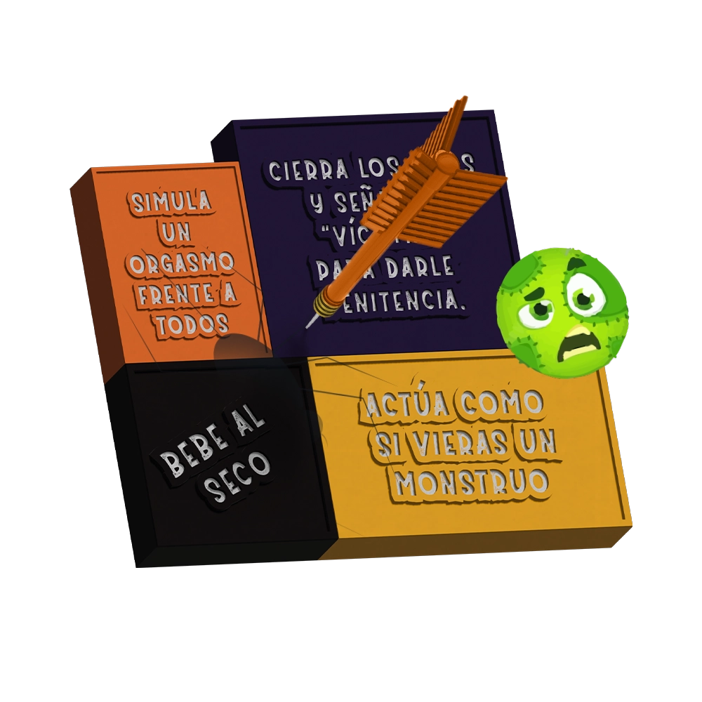 Un tablero exclusivo 60×40 cm, con más de 40 penitencias temáticas de Halloween que combinan terror, picardía y diversión.